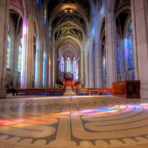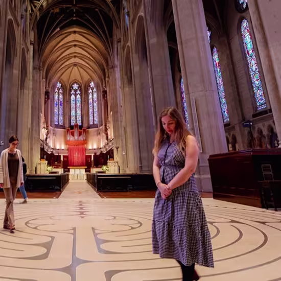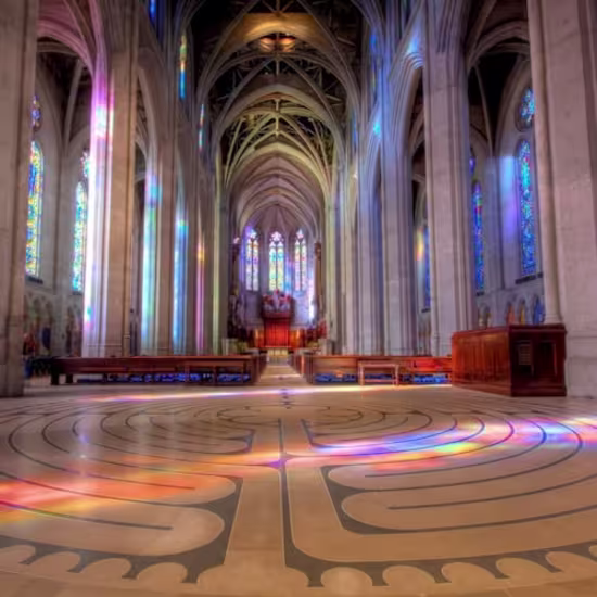 La Grace Cathedral ospita due labirinti: uno in stile medievale, sul modello della Cattedrale di Chartres, all'interno, e un labirinto all'aperto nel cortile adiacente. Questi labirinti offrono ai visitatori un'esperienza unica di cammino meditativo che incoraggia la riflessione e la consapevolezza.